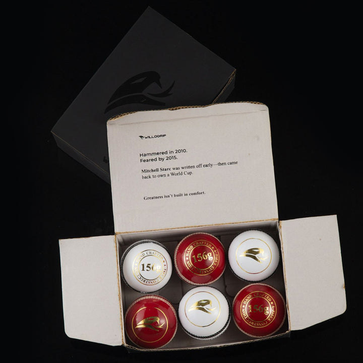 The WilloGrip leather cricket ball is crafted for endurance and precision. Weighing the professional standard 156 grams, each ball is designed to perform consistently over the course of long matches spanning 50 to 70 overs. Made available in both traditional red and modern white, these balls are built to uphold their shine, seam, and hardness through hours of play. Whether it is the grinding rhythm of day cricket or the spectacle of a night match, WilloGrip balls bring together craftsmanship, durability, and balance so players can experience a true contest between bat and ball.